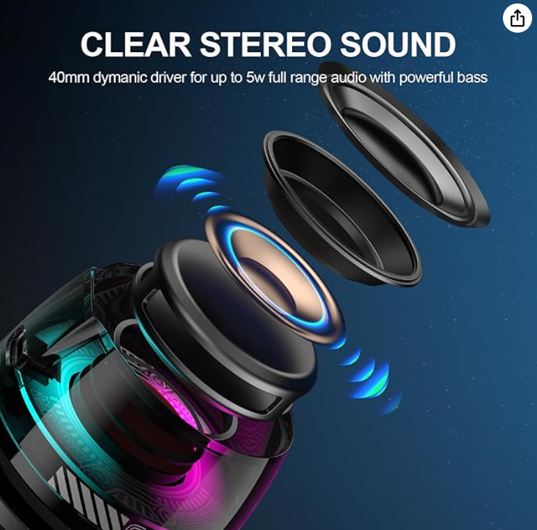 ✅ Sonido claro y potente: Altavoz Bluetooth con controlador de 1.575 in y 5W de potencia para bajos profundos y un sonido envolvente.