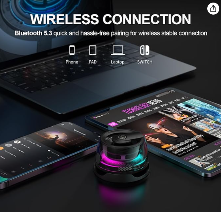 ✅ Bluetooth 5.3: Conexión rápida, estable y sin interrupciones dentro de un radio de 33 pies.