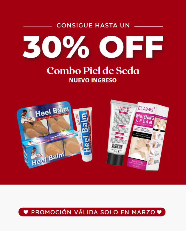 Cuida tus pies y embellece tu piel con el Combo Piel de Seda, una combinación perfecta de Crema para Callo en los Talones y Crema Blanqueadora Para las Zonas íntimas. Diseñado para quienes buscan una piel hidratada, libre de grietas y con un tono uniforme.