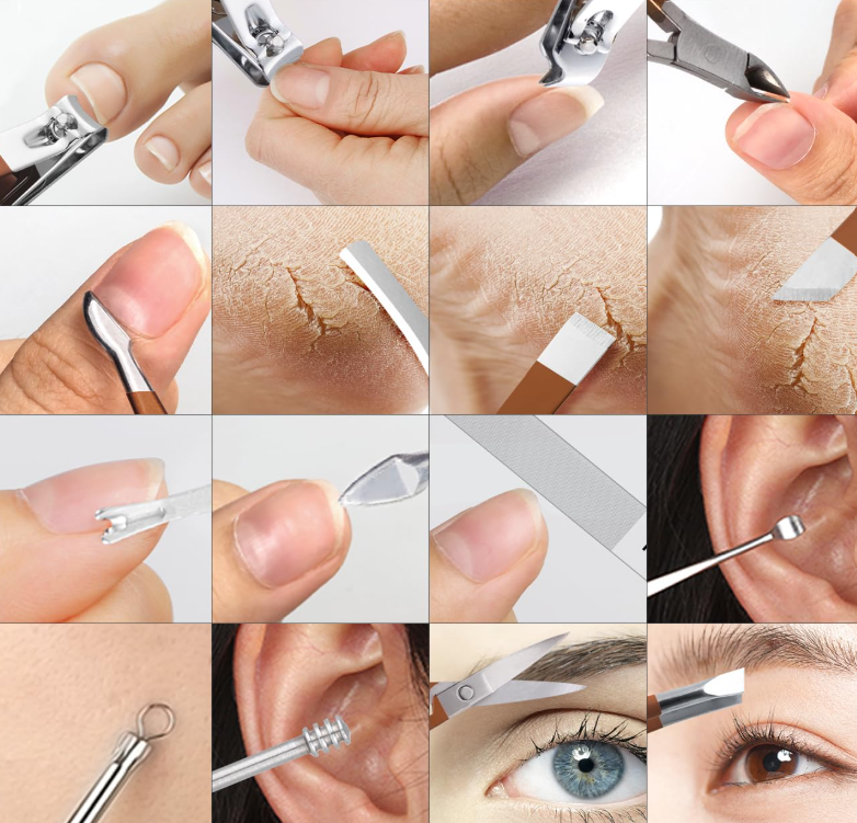 ✅ Set de manicura y pedicura 17 piezas: cortaúñas, pinzas, removedores y más, para un acabado impecable en uñas y cutículas.
