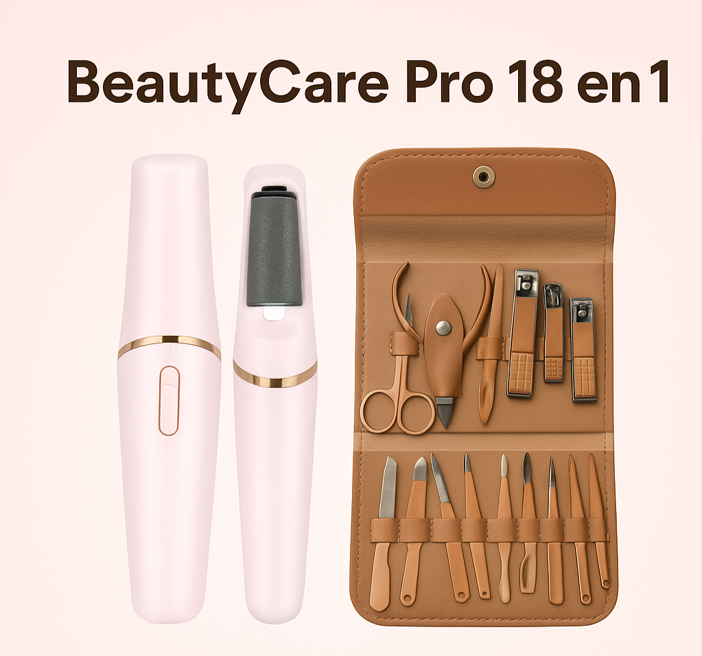 Con el Combo BeautyCare Pro 18 en 1, tendrás todo lo necesario para un cuidado profesional de pies y manos en casa.
